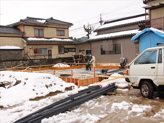 冬の始まりの重い雪が積もり、我が家の立て直しに影響を与えていました。