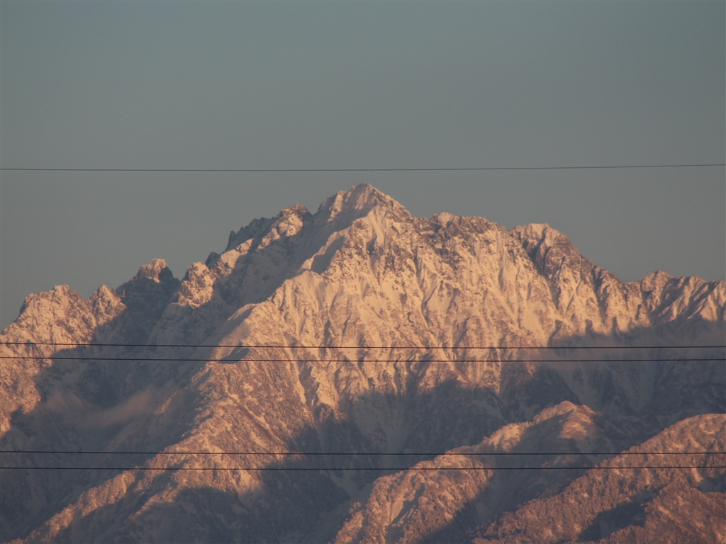 今日は日本海側にしては珍しく晴れで、剣岳もその雄姿を少しだけ見せていました。
