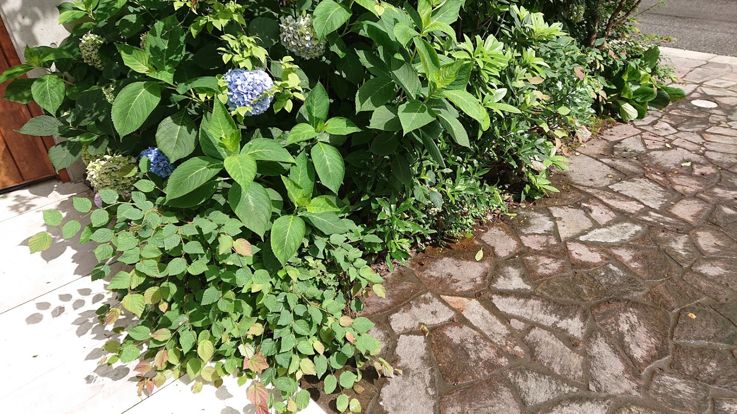 今日は晴れ間がのぞく曇り空です。久しぶりに見た太陽。アジサイが雨に濡れてキレイでした。