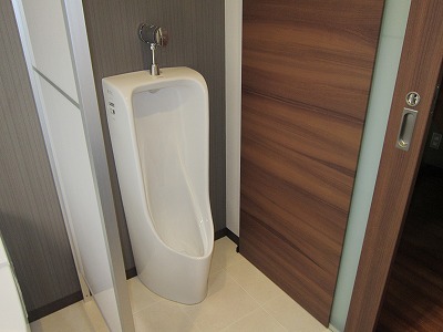こちらのお客様は、男性用を残したいという希望があり、すっきりとしたデザインの便器を取り付けました。