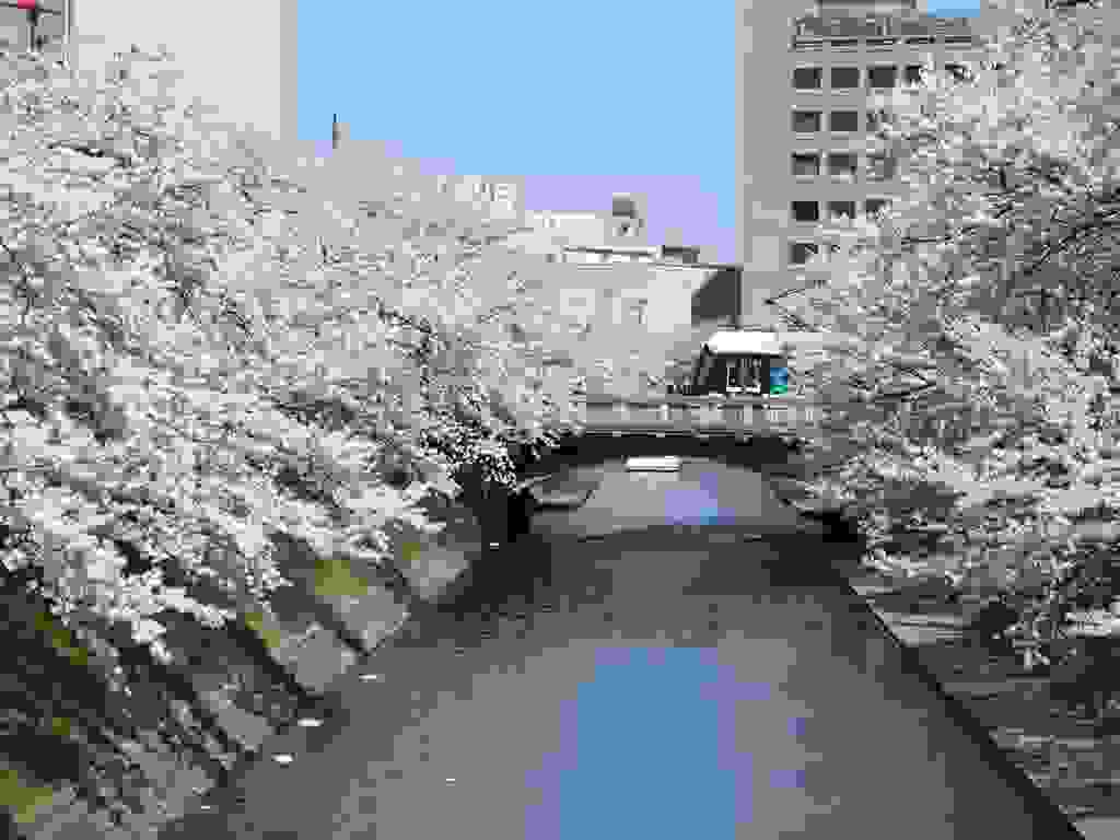 満開の川と国の有形文化財にも指定されている「桜橋」