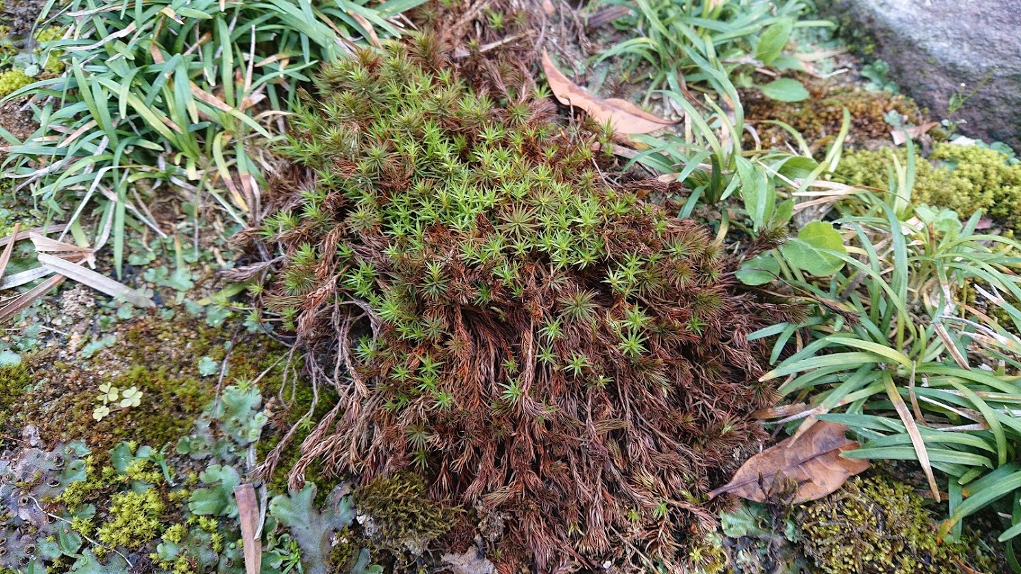 種類を調べてみました。上の写真のコケは、スナゴケです。乾燥に強く、日向向けだそうです。