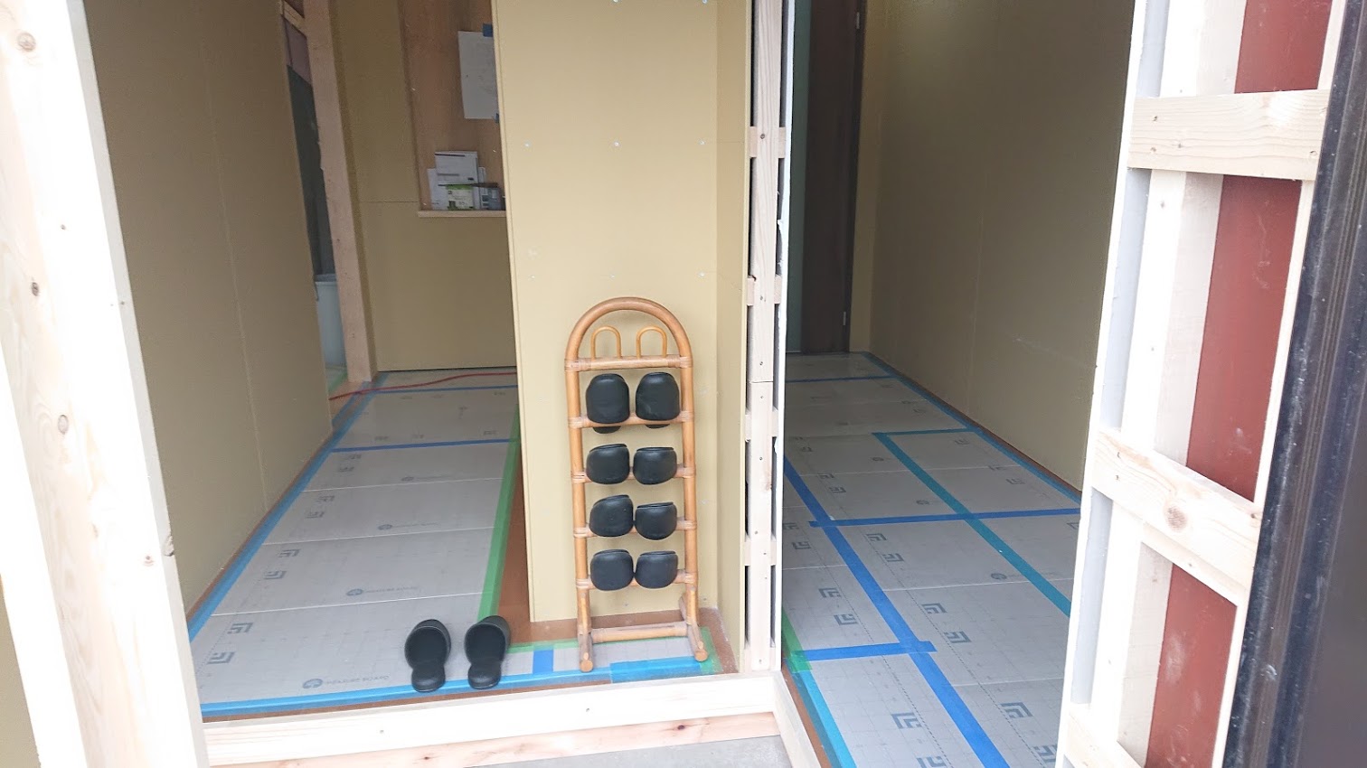 当社の玄関改修工事は、大工工事が順調に進み、仕上げの段階に入ってきました。