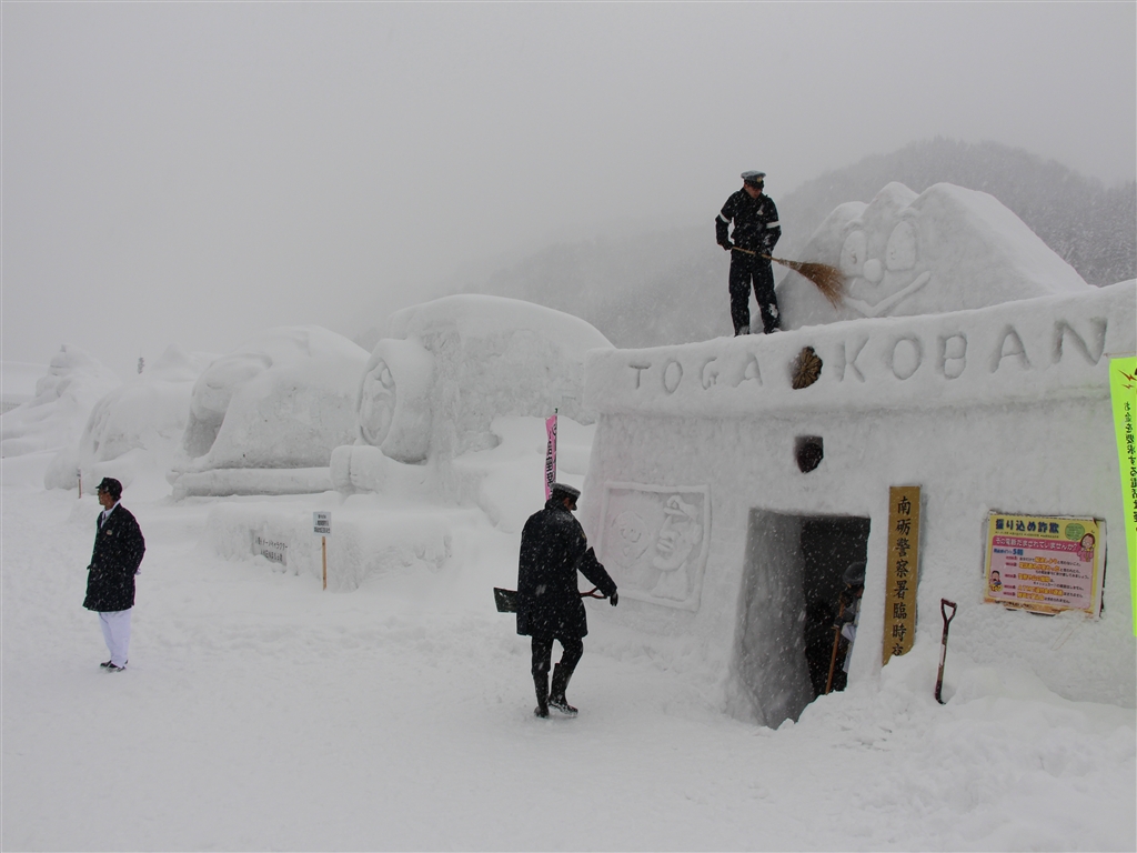 警察も臨時派出所を出しており、降り積もった雪を竹ホーキで落としていましたよ。