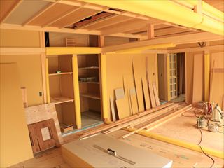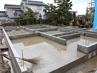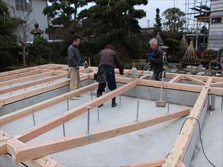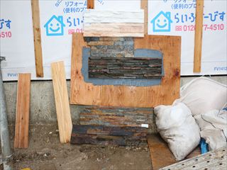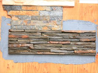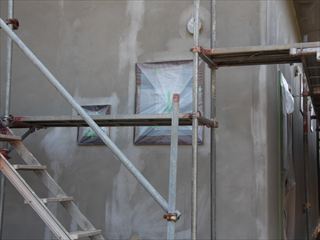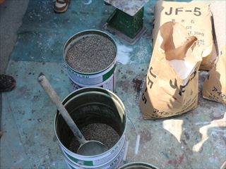 先ず、写真にある黄色いメッシュ状のものを貼り付け、その上から左官屋さんのようにセメントを塗り付けます。