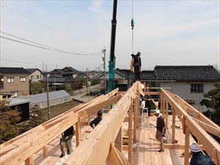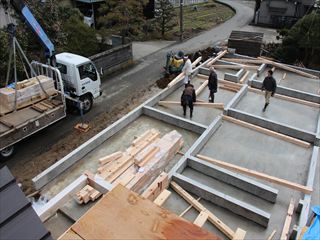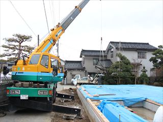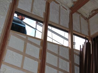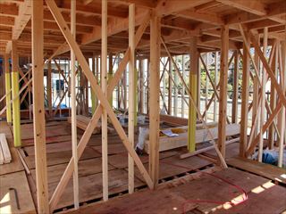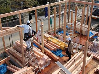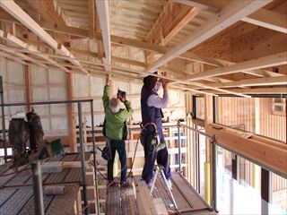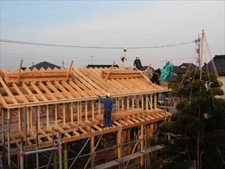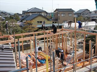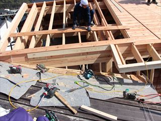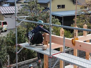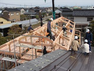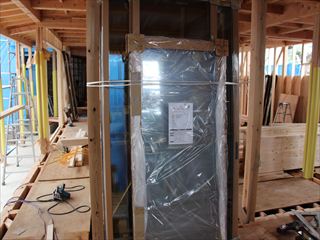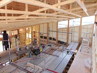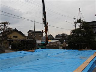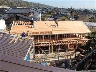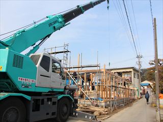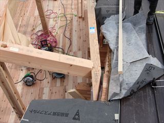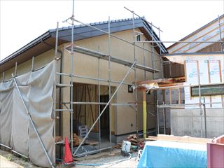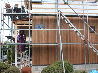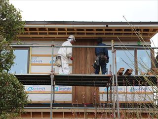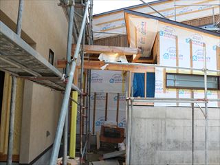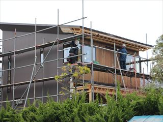 6月末の完成に向けて、いよいよA棟の外壁下地工事を開始いたしました。