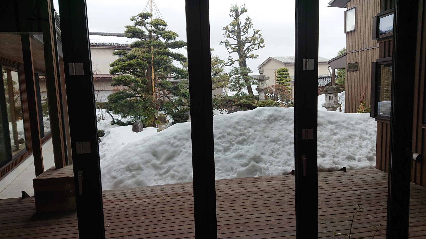 我が家の庭の雪もご覧の通り。前方にある雪山は屋根から落ちた雪です。