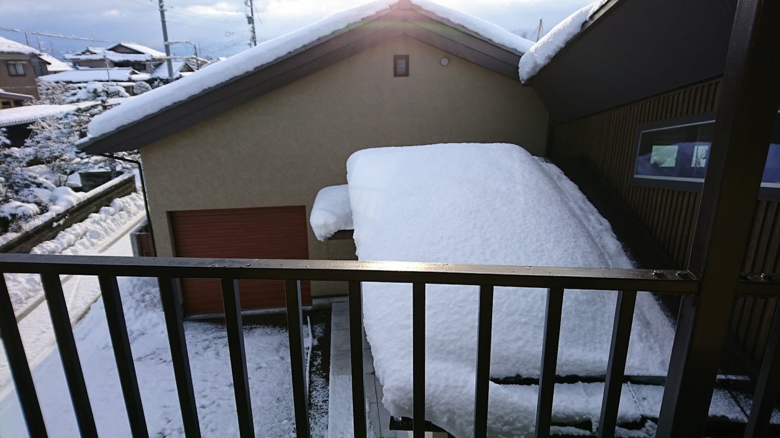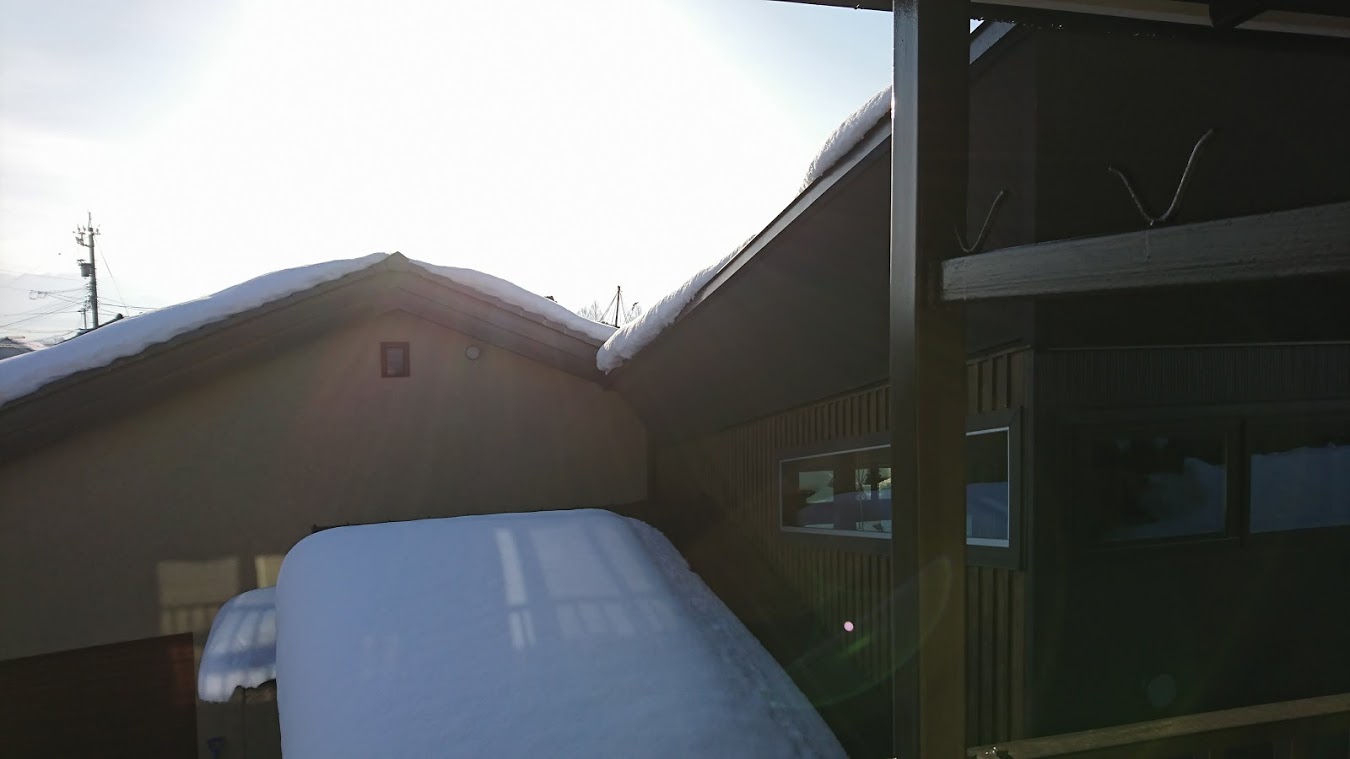 今日の明け方、ドドドッと地震のような音がしたと思ったら、屋根雪が落ちた音でした。